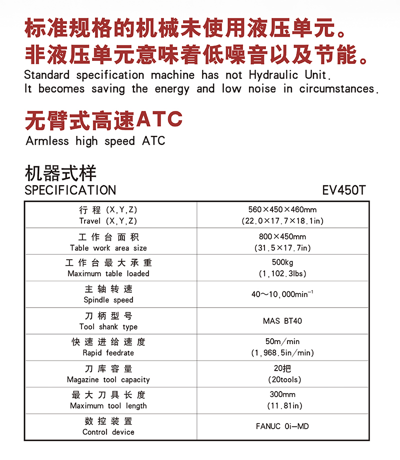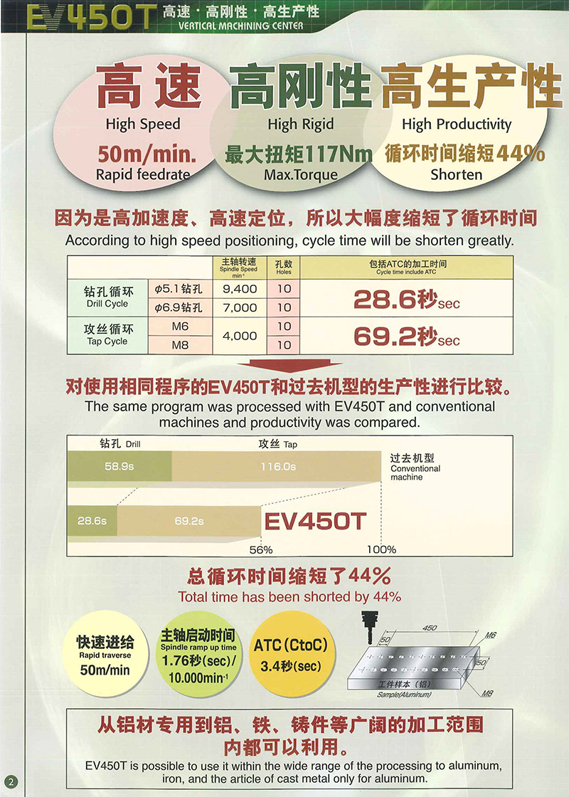 EV450T/Te是远洲品牌的一款高速、高刚性、高生产性的立式加工中心,结构紧凑,功能强劲;为同时对速度和精度有较高要求的应用而设计制造,大幅度缩短了循环时间。采用符合最高标准的工业灰铸铁制造,性能稳定可靠,能为您的加工应用提供快速而精确的响应。