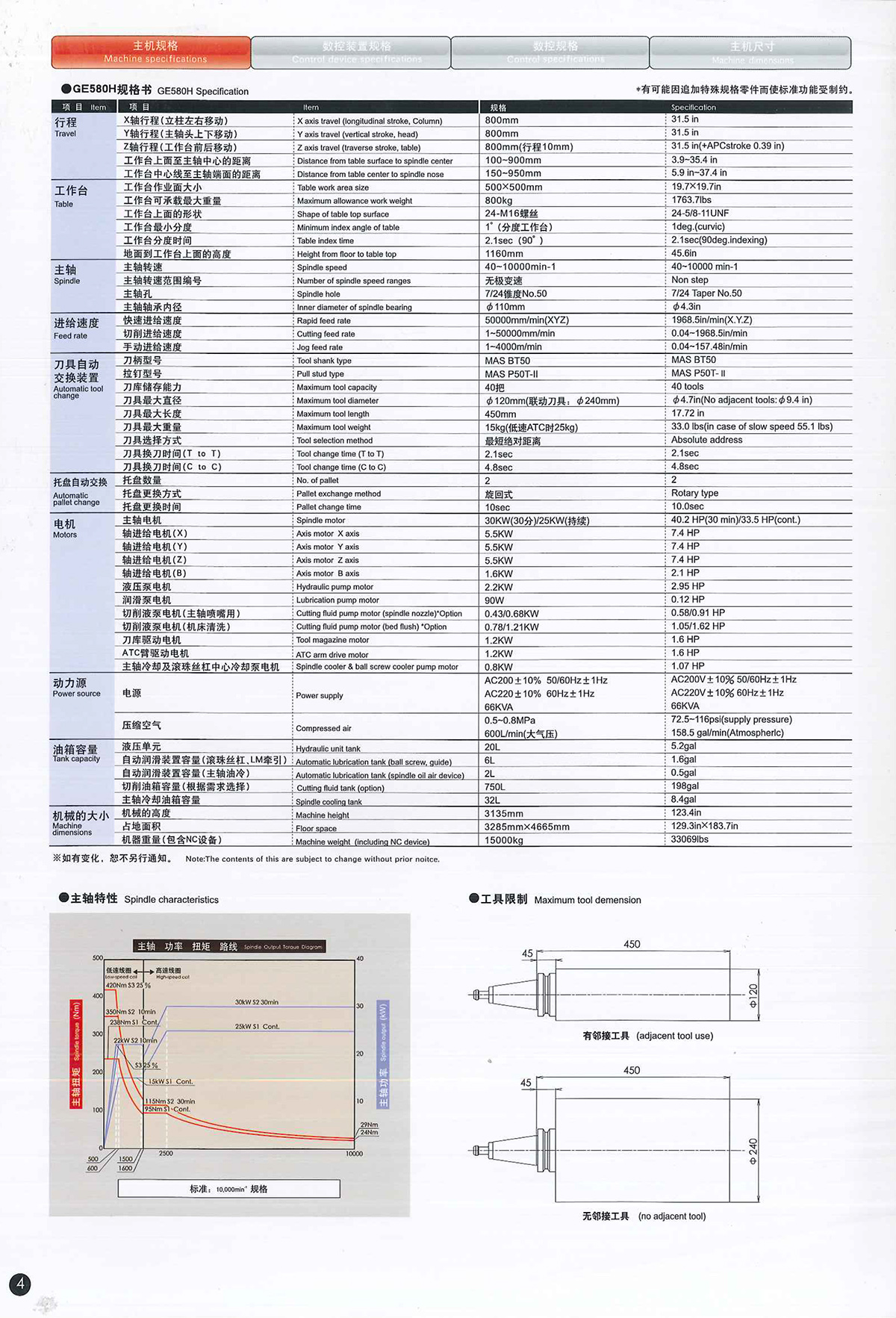 日本远洲GE580H卧式加工中心特征:可进行强力切削的高速·高刚性卧式加工中心;高速和高刚性性能高度成熟;采用了新型立柱使刚性更强;各轴800mm的超大行程。